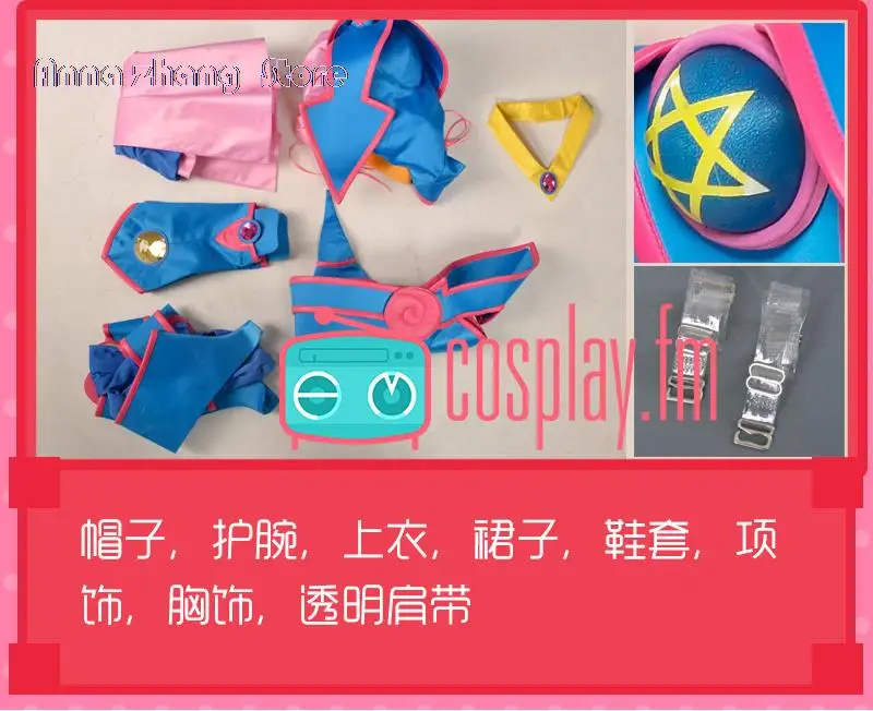 The costume includes hat, wrist guard, top, skirt, shoes cover, choker, chest decoration, transparent bra straps